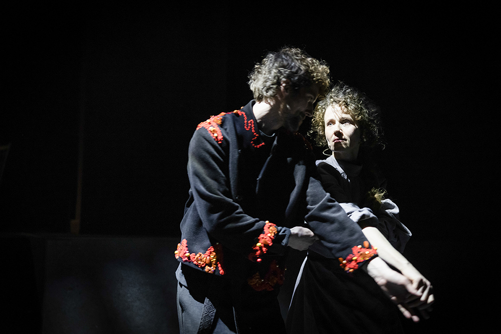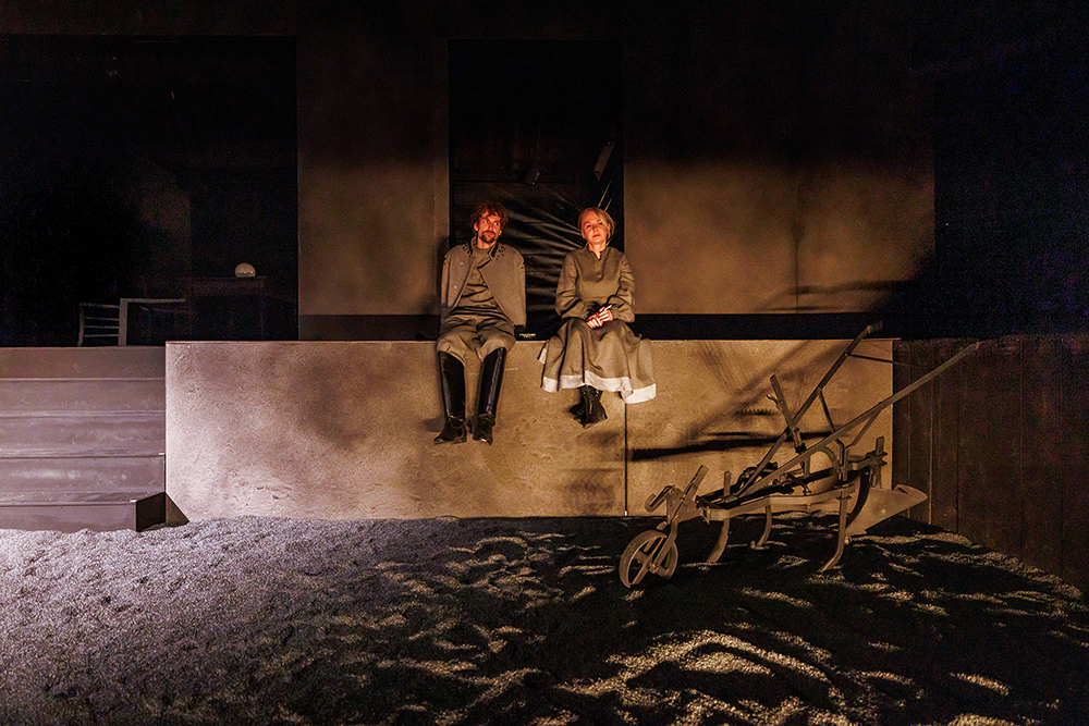 Następujące po sobie sceny, bardzo precyzyjnie ustawione pod względem dramaturgii i świateł, pogłębiają wrażenie patosu: każde, nawet błahe doświadczenie naznaczone jest celowością i metafizyką („Gdy w wieku dwunastu lat wziął do ręki bat i uderzył nim konia, stracił swoją niewinność. Swoją bezpośrednią więź z Bogiem. I w tamtej chwili przestał w Niego wierzyć”). Halina, patrząc gdzieś przed siebie, w natchniony sposób raz po raz mówi pełnym truizmów i zbudowanym w oparciu o dość oczywiste paradoksy wierszem („Bo nie jestem tu pierwszy / i nie będę ostatni. / Jestem tylko przejściem / między tym, co było / a tym, co zostanie”); Igor, wychowany w chłopskiej rodzinie i zajmujący się uprawą roli, podczas byle rozmowy podnosi filozoficzne kwestie („Może to jest jakaś naturalna kompensacja? Żeby coś dostać trzeba z czymś się rozstać?”), a czynność orania pola przez bohaterów zostaje ukazana jako przeżycie transcendentalne i formujące ich postrzeganie świata. Mistyczna rama przedstawienia przekłada się na sposób prowadzenia postaci przez aktorów i aktorki. Damian przypomina zjawę, demiurga lub szaleńca (błądzi wzrokiem, ma nieobecny wyraz twarzy, nie wiadomo, z jakiego porządku pochodzi), Halina funkcjonuje na granicy świata realnego i mitycznego (zwraca się bezpośrednio do ziemi i drzew, wydaje się spoza czasu), Ala bliska jest popadnięciu w szaleństwo, a Igor rozpoznaje w podającym się za etnologa mężczyźnie samego siebie. Wszystko to sprawia, że trudno uwierzyć bohaterom i bohaterkom oraz przejąć się ich losami – przez cały czas pozostają dla widza emocjonalnie niedostępni, jawią się jedynie jako nośniki określonych emocji lub idei, elementy dramaturgicznej układanki. Wydaje się, że ich działania i reakcje nie wynikają z jakiejś wewnętrznej logiki, którą odbiorcy muszą zrozumieć i odkryć, lecz z chłodnych kalkulacji twórców, którzy podporządkowali je nadrzędnej koncepcji inscenizacyjnej – tak, jakby praca nad przedstawieniem przypominała rozwiązywanie równania, gdzie dodanie określonych wartości przyniesie spodziewany wynik. Krakowski spektakl raz po raz odsłania przed widzem swoje szwy i wewnętrzną strukturę, co uniemożliwia uwierzenie w sceniczną iluzję.