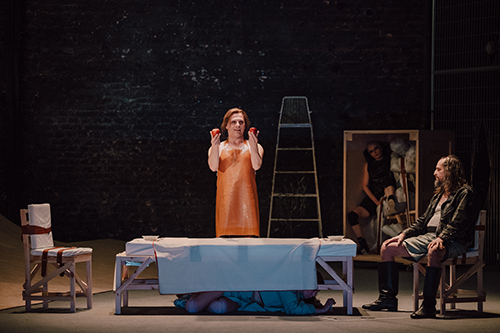 Jednak nie tylko wybór utworu działa na niekorzyść prologu spektaklu. Moje wątpliwości łączyły się z polonistycznym żachnięciem: „ale nie tak, nie tak przecież powinno się recytować Szymborską”. Nie chcę się czepiać Obidzińskiej, ponieważ w perspektywie całego przedstawienia jej rola Kasandry nie była zła. Jednak na początku aktorka przestrzeliła w doborze środków. Interpretacja poezji noblistki – pisanej z myślą o powściągliwej, niedramatycznej recytacji – nie wybacza nadmiaru. Cena za przesadną ekspresję jest wysoka: prowadzi do niezamierzonego popadnięcia w komizm, a nawet parodię. Dość ryzykowne, gdy chcemy proponować rozważania o uniwersaliach wojny.